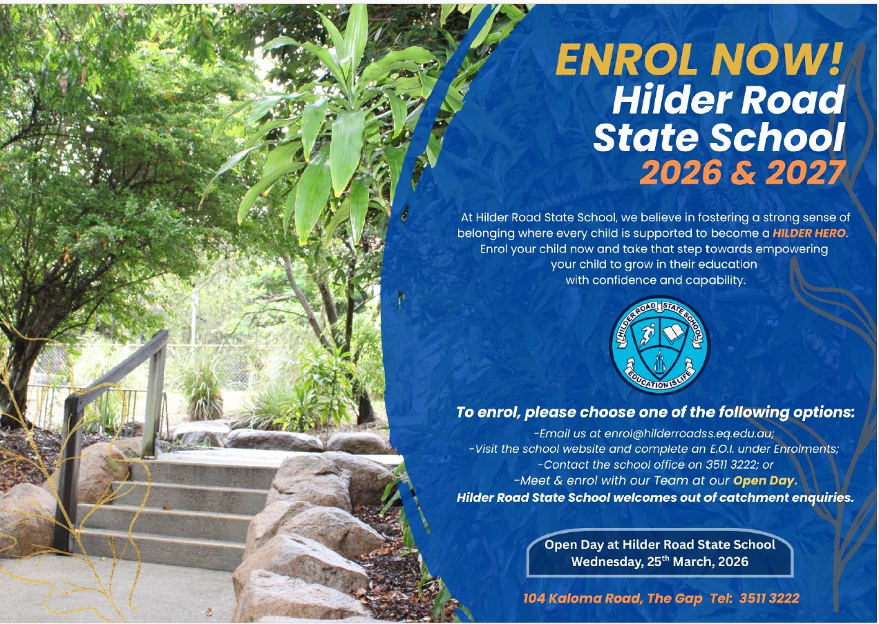 At Hilder Road State School, we believe in the power of togetherness, fostering a strong sense of belonging where every child is supported to become a Hilder Hero. This is born from the school’s rich history of nearly 50 years of learning along with our experienced and dedicated staff who always have our learner’s best interests at heart; creating a nurturing environment where every individual learner is valued and encouraged to thrive. With the unwavering support of our caring Parents & Citizens' Association (P&C), we ensure that all students receive the resources and opportunities they need to succeed. Nestled in a leafy green residential area, our school is built on a foundation of long-term families who cherish and take pride in our welcoming, close-knit community.